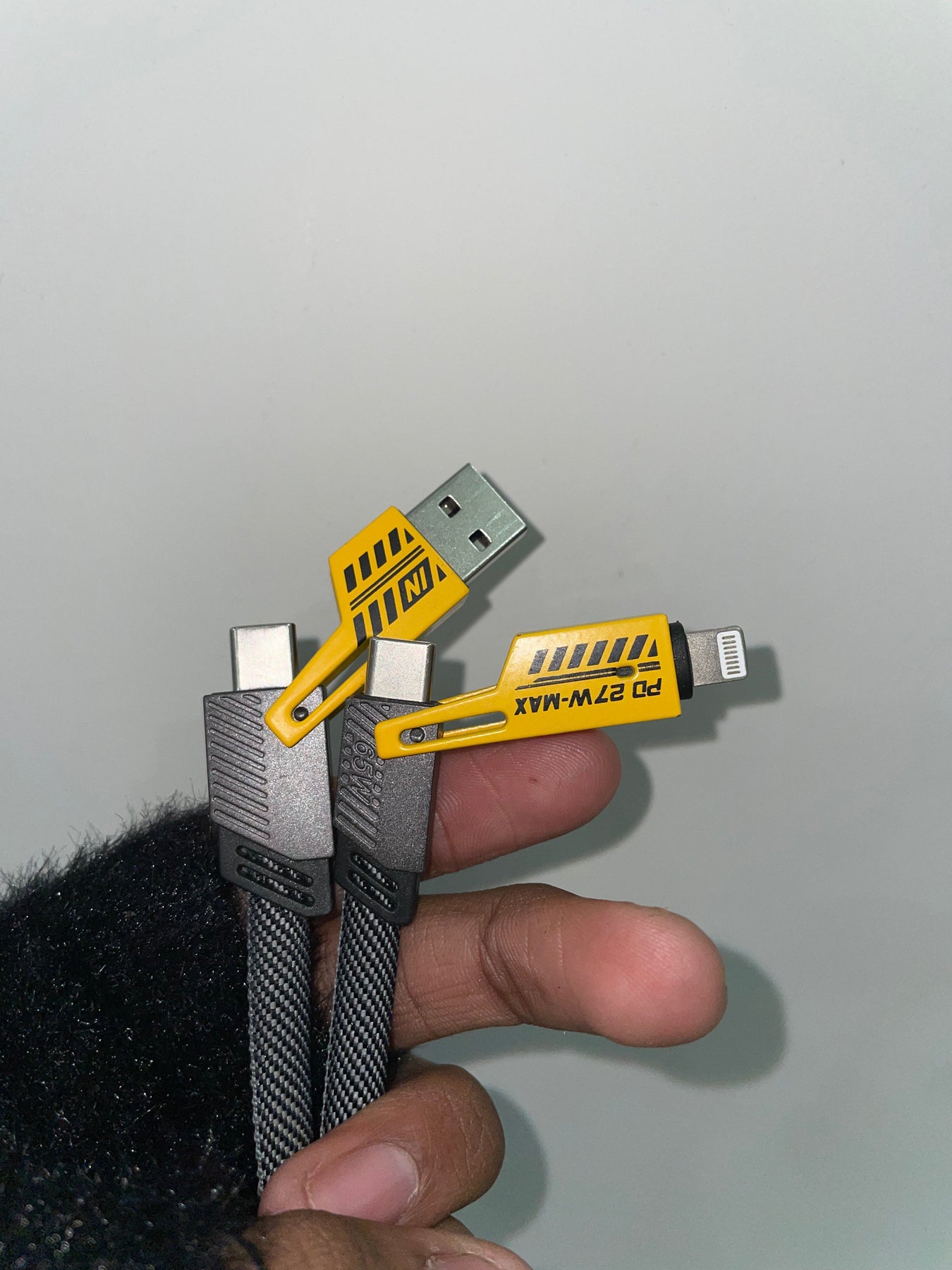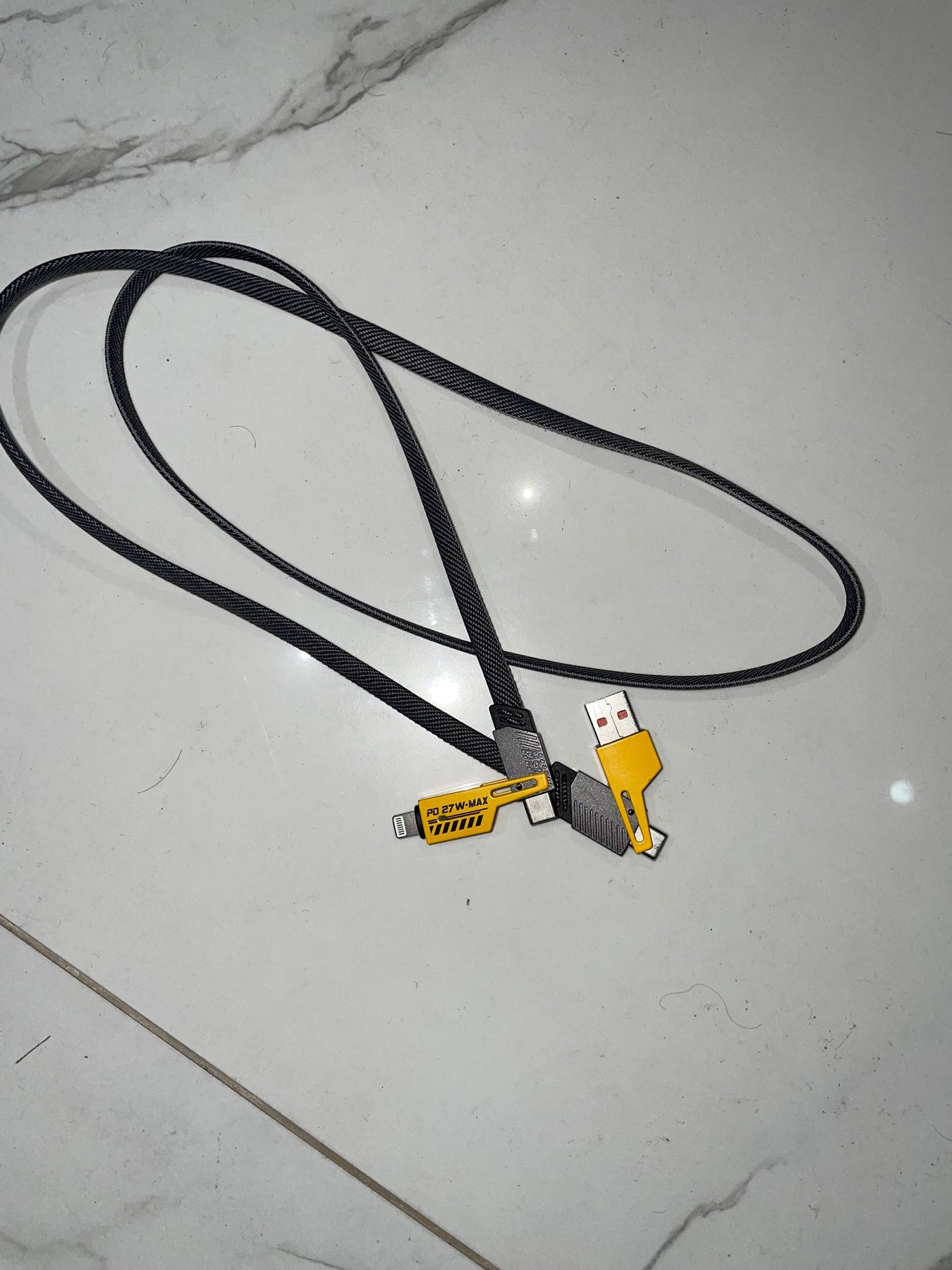 Eco Home Goods Multi-Function 4-in-1 Fast Charging Data Cable: A versatile cable with 4 connectors for charging multiple devices simultaneously. Compatible with Type-C, Micro USB, and Lightning ports, it ensures fast charging and data transfer. Durable, tangle-free design perfect for home, office, or travel.